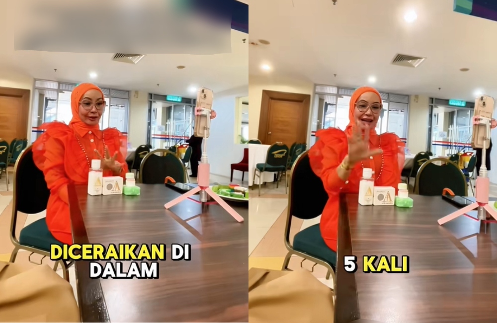Seorang usahawan yang dikenali sebagai “Makcik Kemboja” mendedahkan bahawa dirinya telah diceraikan suaminya ketika sedang melakukan siaran langsung di media sosial, dengan kejadian itu disaksikan lebih 200 penonton dalam talian.