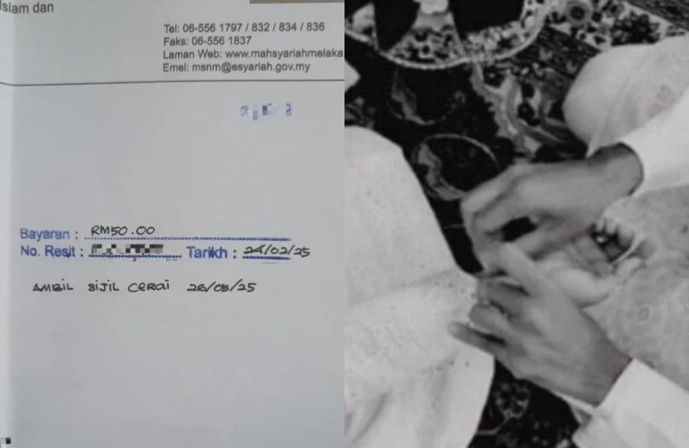 Lelaki yang dikenali sebagai Azraf memaklumkan bahawa dia telah melafazkan cerai terhadap wanita berkenaan pada 24 Februari lalu di Mahkamah Syariah Melaka, sekaligus menamatkan perkahwinan yang hanya bertahan enam bulan sejak mereka bernikah pada 24 Ogos tahun lalu.