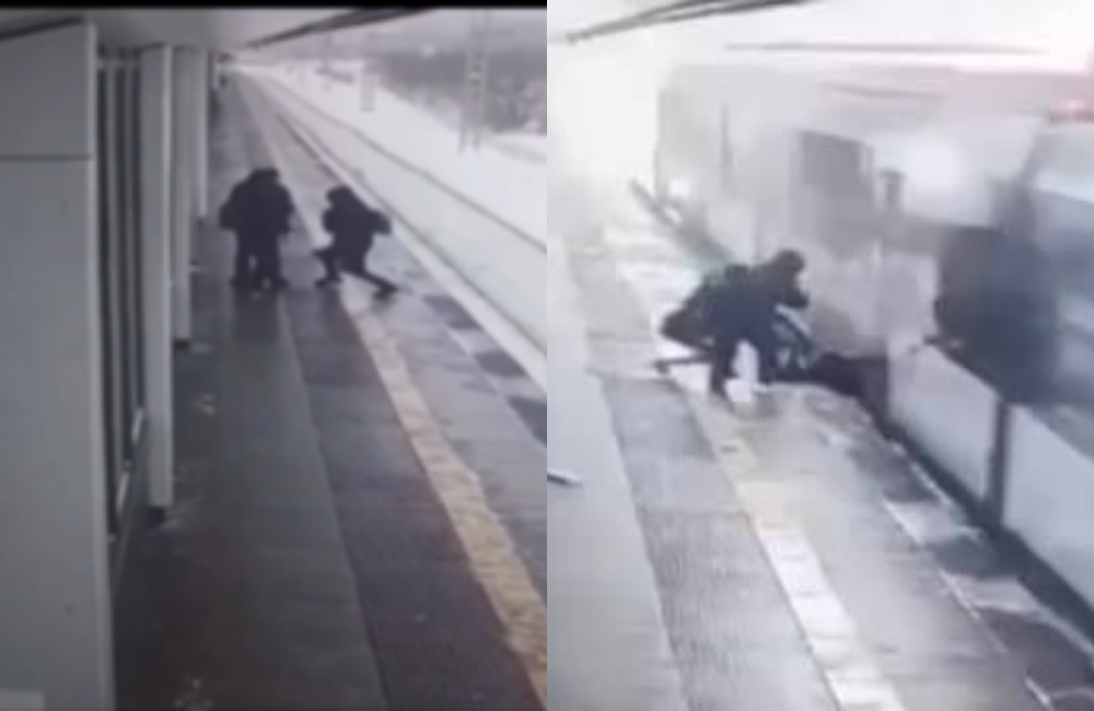 Seorang remaja terpaksa berhadapan dengan detik cemas apabila aksi bergurau senda bersama rakan bertukar detik hitam selepas mangsa hampir terjatuh ke sebuah landasan kereta yang tereletak di Moscow, Rusia.
