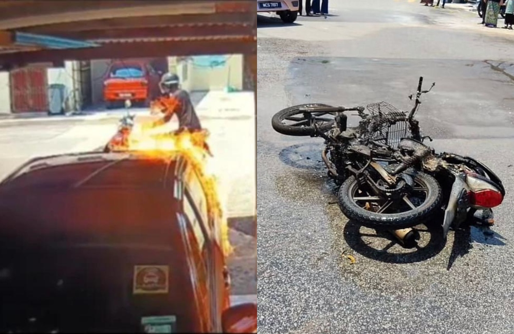 Tindakan seorang lelaki dipercayai cuba melakukan khianat dengan membakar kenderaan di Taman Bukit Katil Permai, Sabtu lalu, membawa padah apabila motosikal yang digunakan turut hangus di lokasi kejadian.