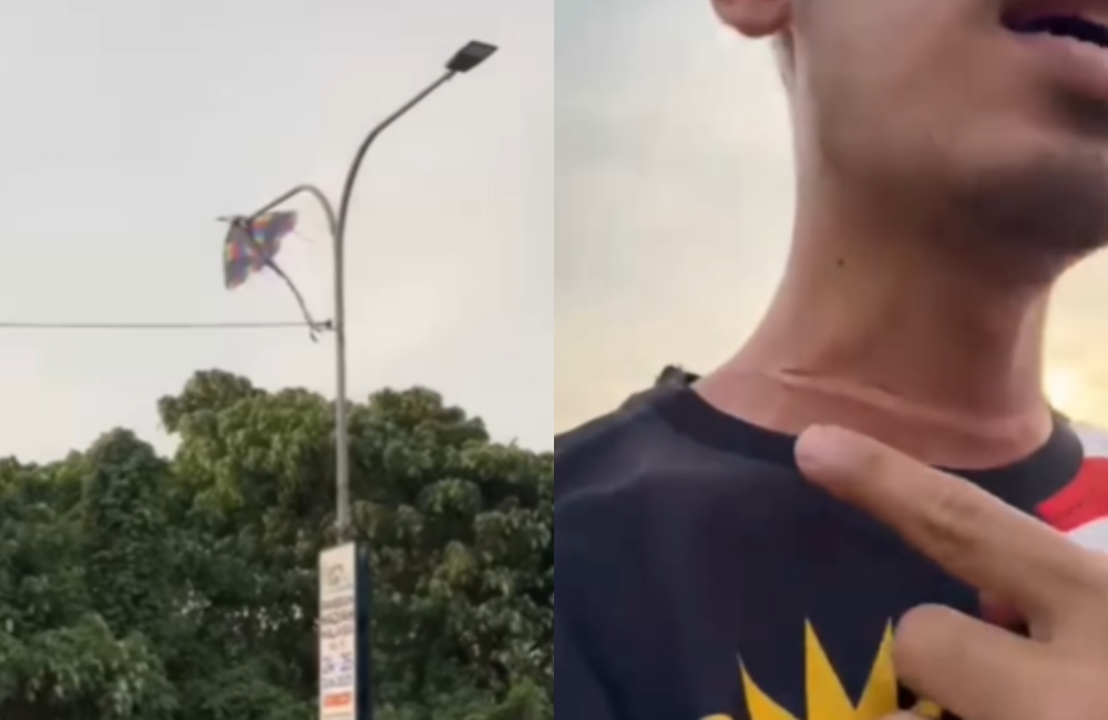 “Kalau saya tak pakai kain ini, mungkin leher saya dah putus,” kata mangsa dalam rakaman tersebut, sambil merayu agar pihak berkuasa mengambil tindakan terhadap aktiviti bermain layang-layang berdekatan kawasan jalan raya.